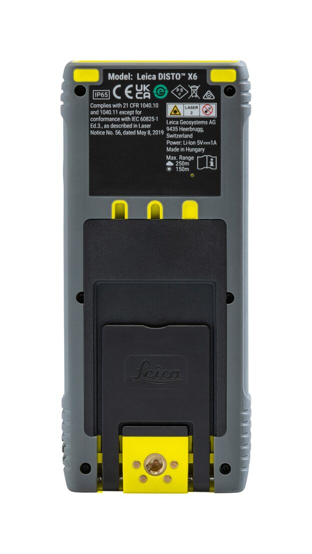 Leica DISTO™ X6 – вимірювальний прилад останнього покоління, що гарантує надійні вимірювання навіть в екстремальних умовах довкілля завдяки високоміцному корпусу. Компанія Leica Geosystems, ґрунтуючись на своєму досвіді, створила цей просунутий далекомір з можливістю розширення для вимірювань P2P, що робить 3D-вимірювання можливими з будь-якого місця. Вбудована камера полегшує виміри на відкритих майданчиках.