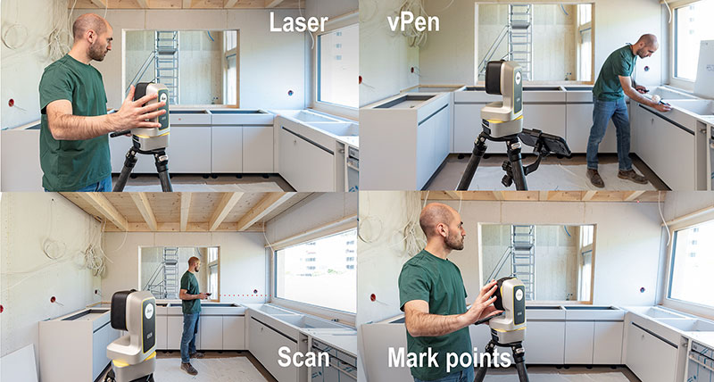 • Вимірювання на стадії будівництва з усіма деталями для внутрішнього оздоблення, наприклад, при будівництві кухні, спорудженні сходів, установці вікон і дверей.